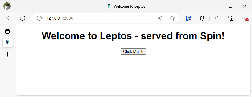 At the time of writing, Leptos-Spin integration is at an early, experimental stage. I’m going to show a simple application on the happy path. But right now there are a number of options and modes in Leptos that we just don’t support. See the Leptos-Spin integration GitHub repo for the current status.